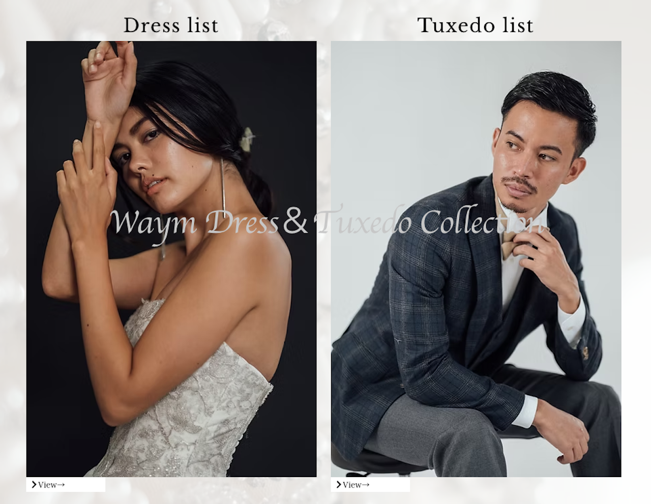 ・ウェディングドレス、タキシード